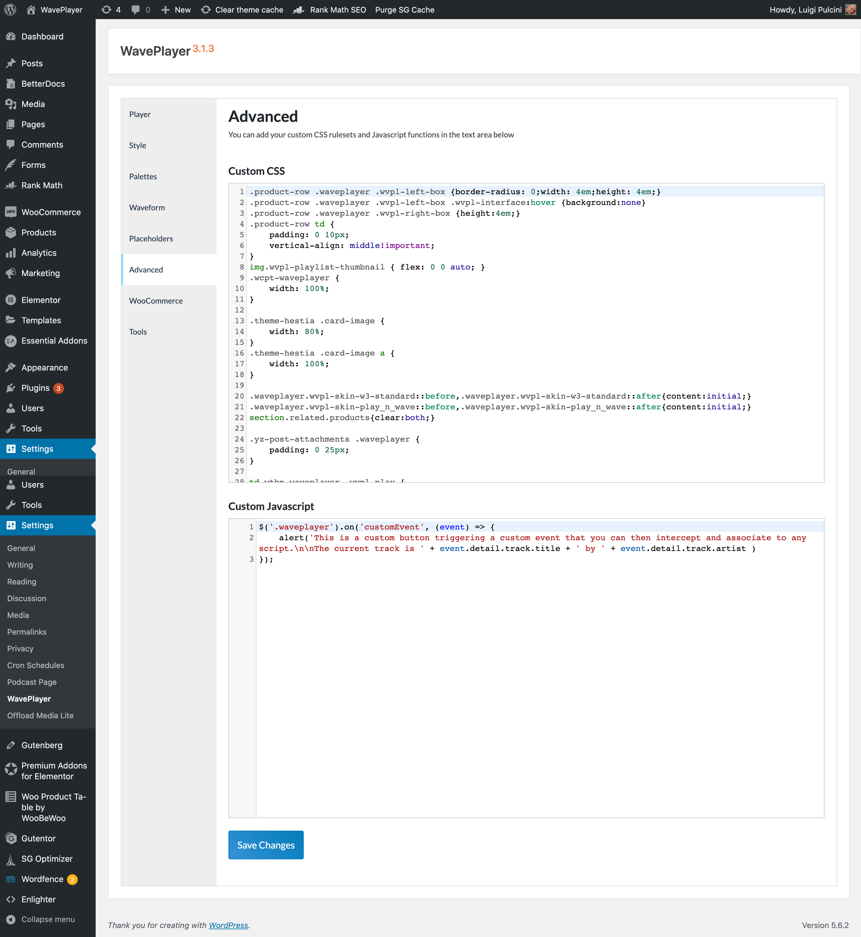 In regards to the Custom CSS box, WordPress offers you several places where you can add your custom CSS rulesets (e.g. the “Additional CSS” box of the Theme Customizer). Nevertheless, we like to keep things separated and use this area to write any custom CSS ruleset that applies to WavePlayer exclusively. This way, you can keep your customization even when switching to a different theme.